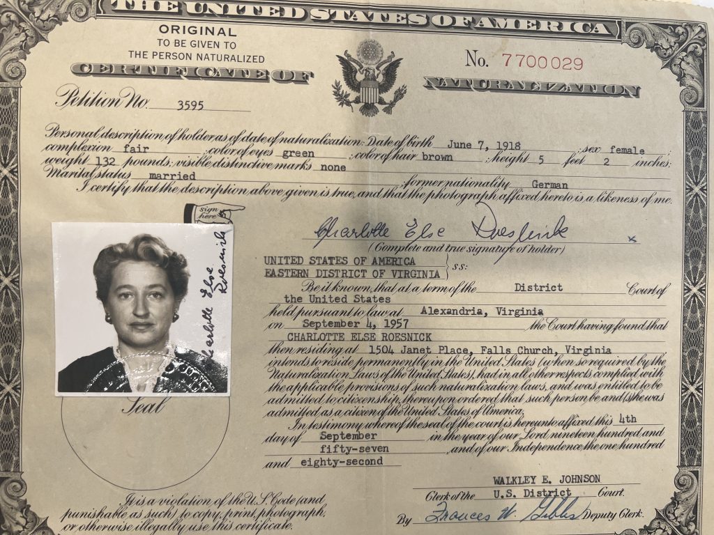 It took a little while, but the Rosnick’s settled in to life in America. Petra’s father got a job at a construction company in DC and she attended school, eventually graduating, gaining citizenship, and marrying an American pilot. But she still wonders about her life in Germany, and family members she left behind. That’s the one thing she wants: closure about what happened to her loved ones that she was removed from due to the war.